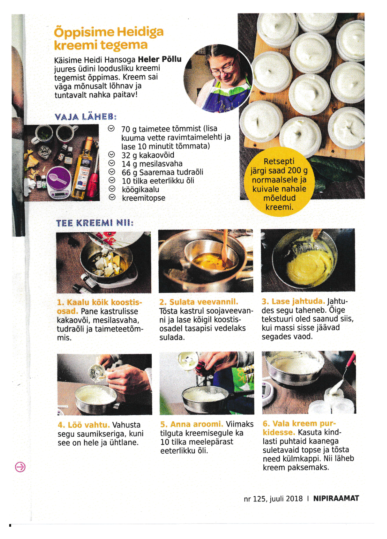 Käisime Heidi Hansoga Heler Põllu juures üdini loodusliku kreemi tegemist õppimas. Kreem sai väga mõnusalt lõhnav ja tuntavalt nahka paitav!