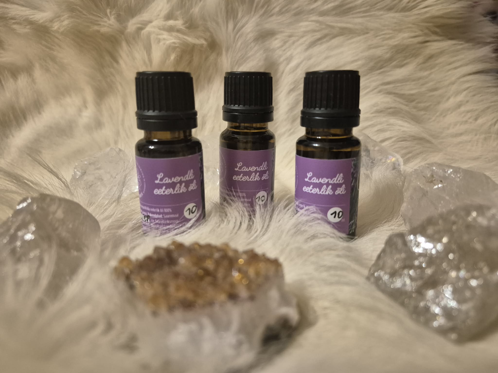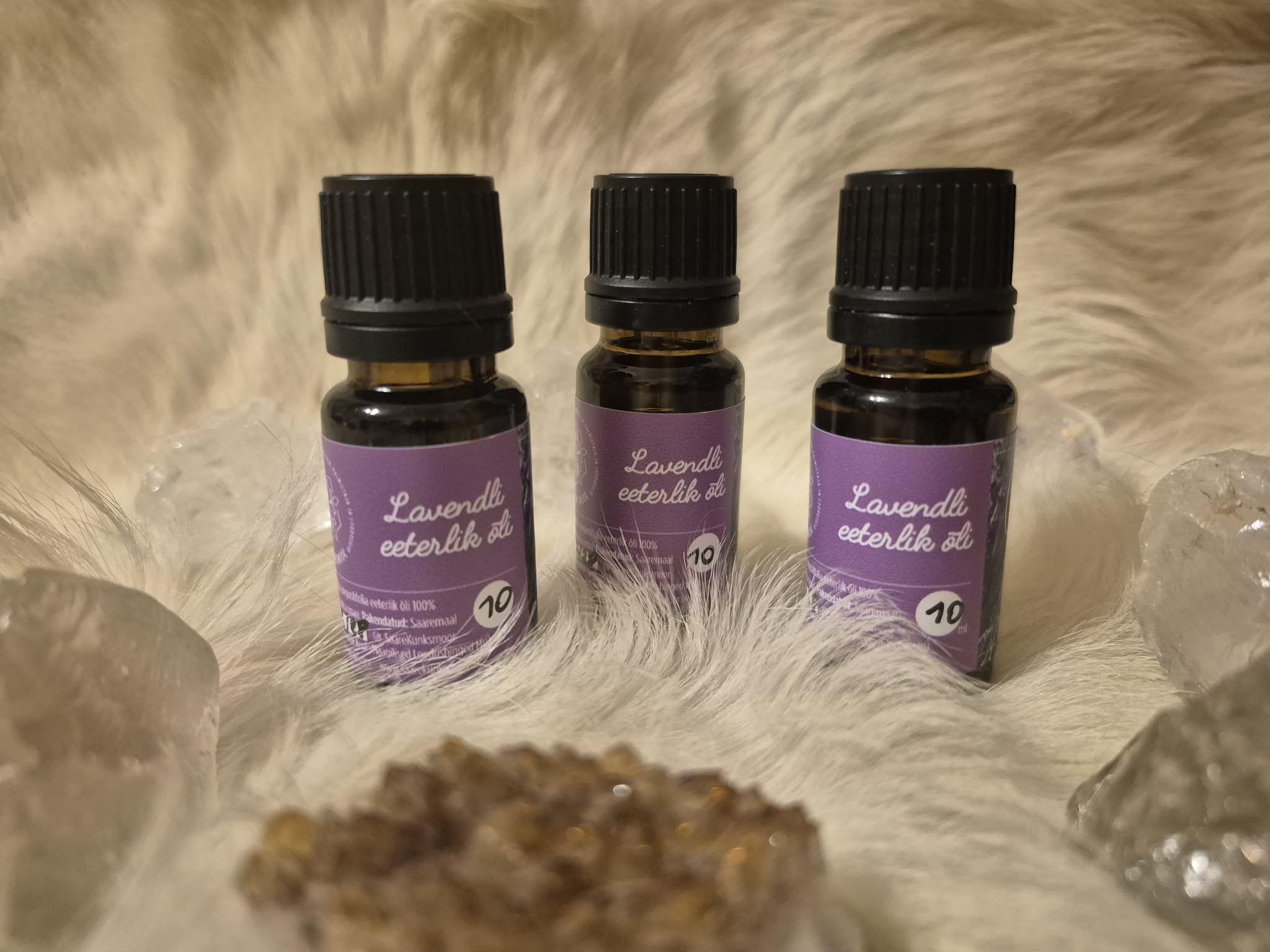 Lavendel- mõjub rahustavalt ja lõõgastavalt. Rahvameditsiinis on kasutatud peavalu korral, haavade ja põletushaavade raviks, päikesepõletuse ja erinevate nahaprobleeme leevendamiseks, vereringe ergutamiseks ja hingamisteede vaevuste korral, emotsionaalse pinge eemaldamiseks. Juuksehoolduses aitab tugevdada juukseid ja ergutada kasvu. On kasutatud ka putukaid tõrjuva vahendina ja ruumide lõhnastamiseks. Soodustab rahulikku ja sügavat und. Kasutamine: vannivette 1-2 tilka, segades 50 ml baasõliga massaažiks lisades 1-3 tilka eeterlikku õli. Lõhnalampi vastavalt ruumi suurusele 1-5 tilka. Sauna leilivette või sauna põrandale vastavalt sauna suurusest 2-6 tilka.