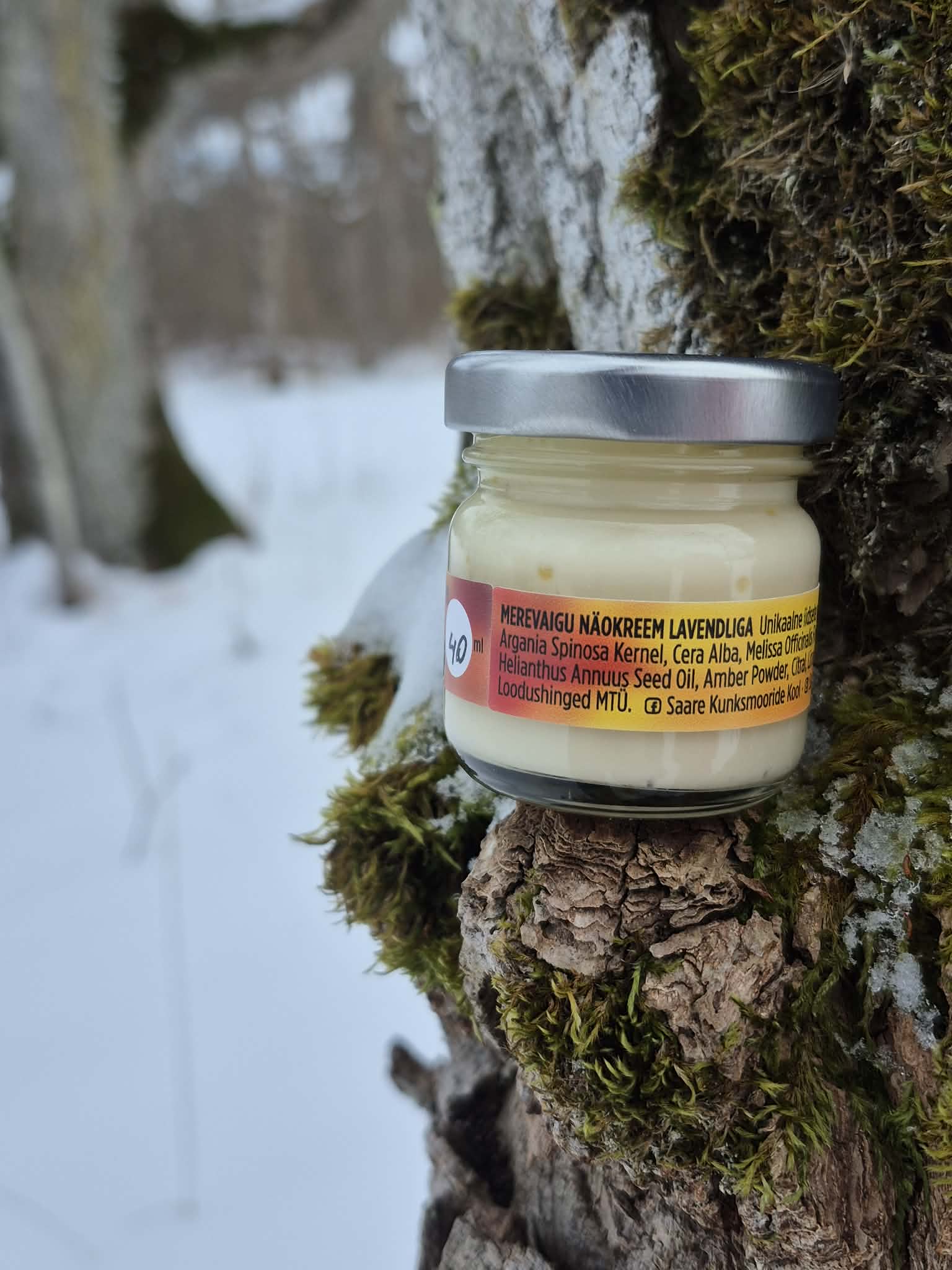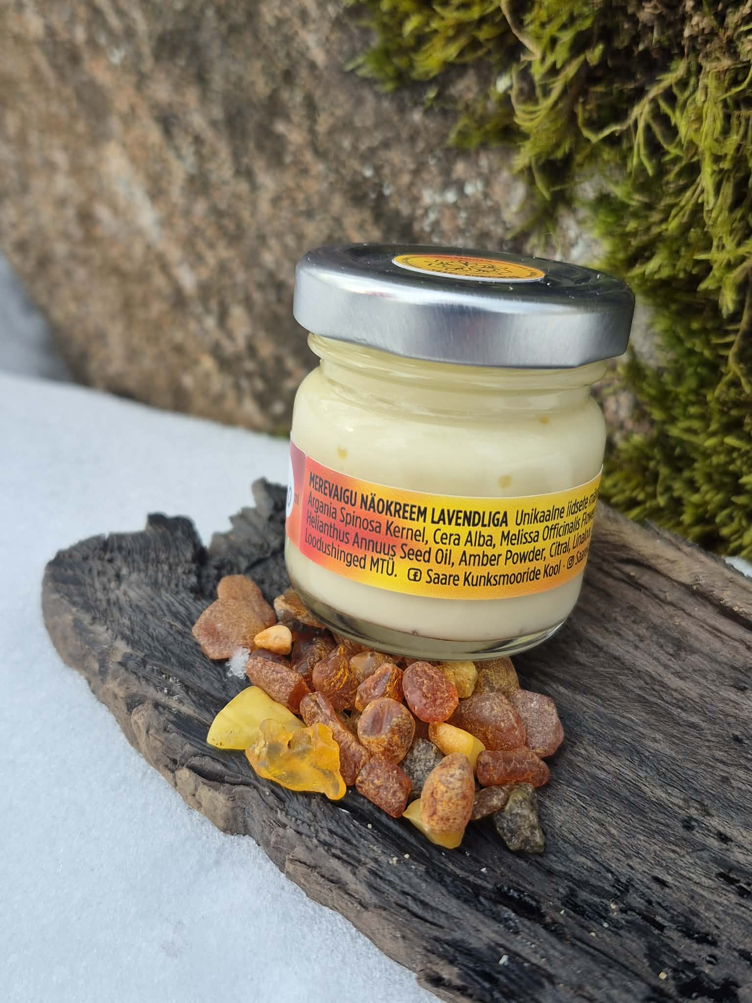 Koostis: mesilasvaha, avokaadoõli, argaaniaõli, tudraõli, kakaovõi, melissi lillevesi, lavendli/melissi eeterlik õli, E-vitamiin ja merevaigupulber.