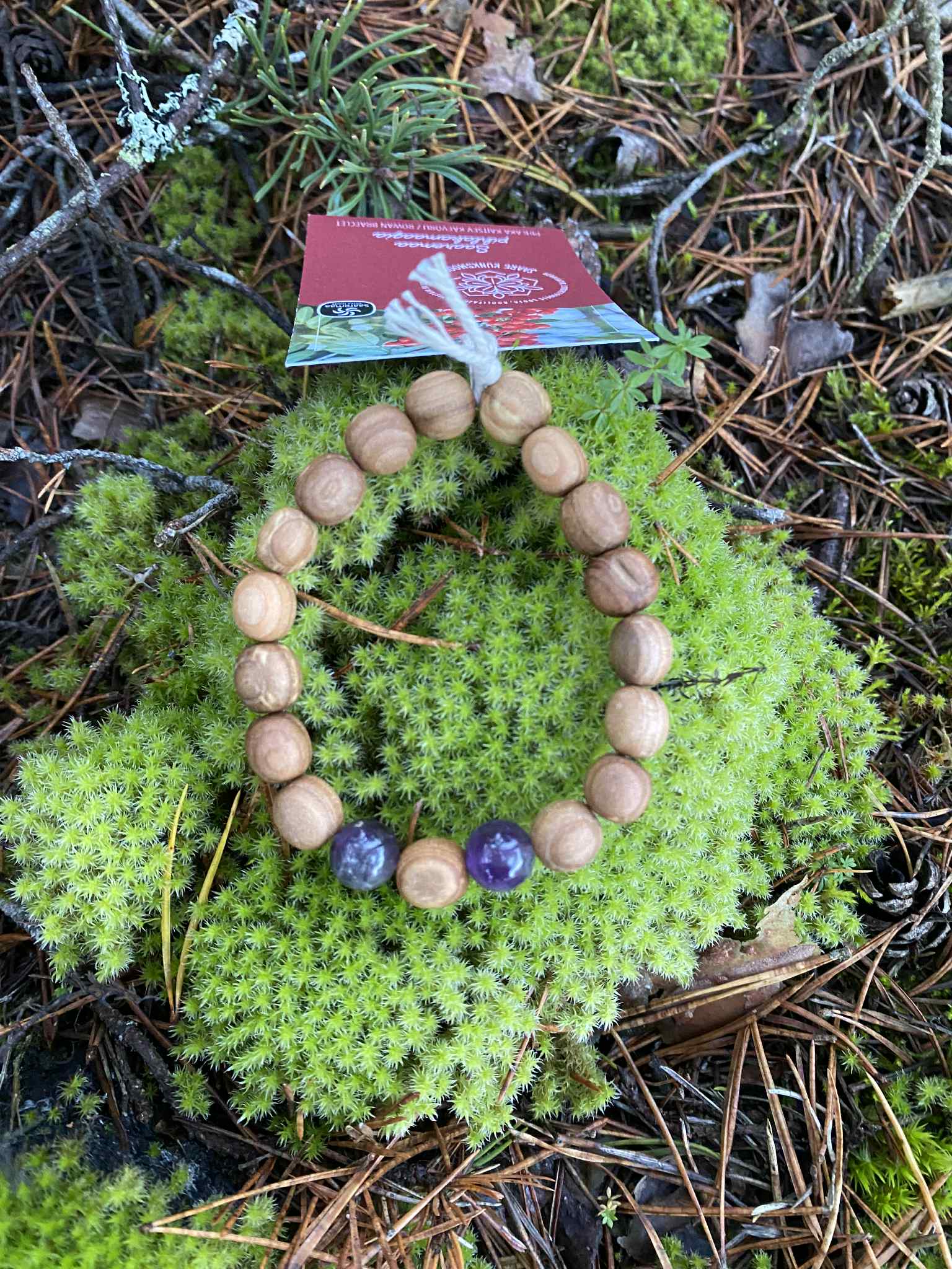Materjal: 100% pihlaka puit, erinevad kristallid, elastne kumm, valminud käsitööna.