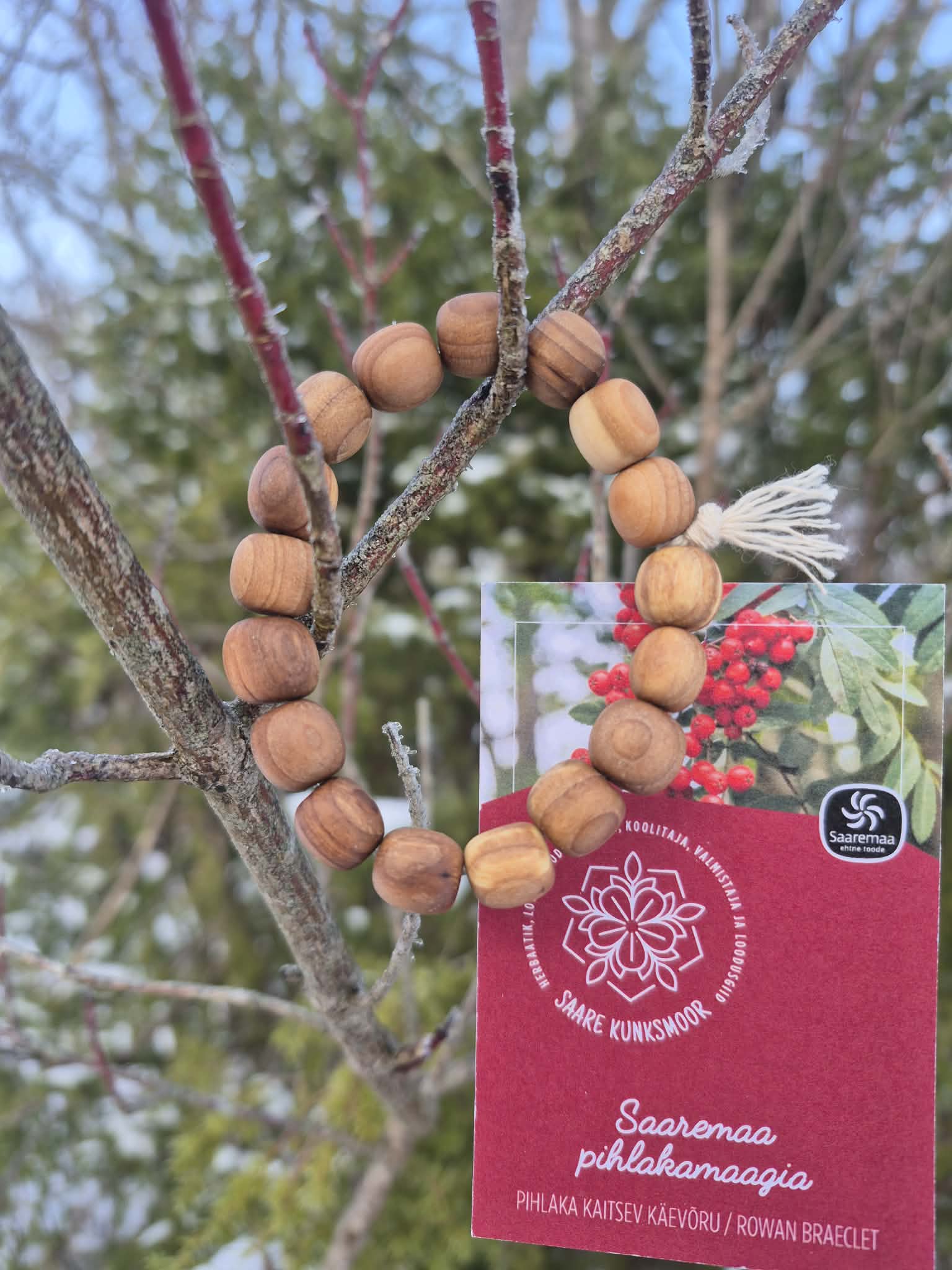 Materjal: 100% pihlaka puit, elastne kumm, valminud käsitööna.