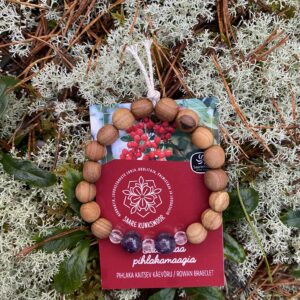 Pihlaka käevõru ametüst, mäekristall ja oonüks Saaremaa pihlakamaagia Materjal: 100% pihlaka puit, erinevad kristallid, elastne kumm, valminud käsitööna. Tõenäoliselt tead juba, et pihlaka puidust valmistatud ehted kannavad endas suurt väge. Pihlaka energia on maagiline, õnnetoov ja kaitsev. Hoiab ära haigused ja kaitseb kaetamise, õnnetuste, negatiivse energia ja kurja silma eest! Pihlakas on nõiapuu. Maja ümber kasvades pakub kaitset väljastpoolt tulevate…